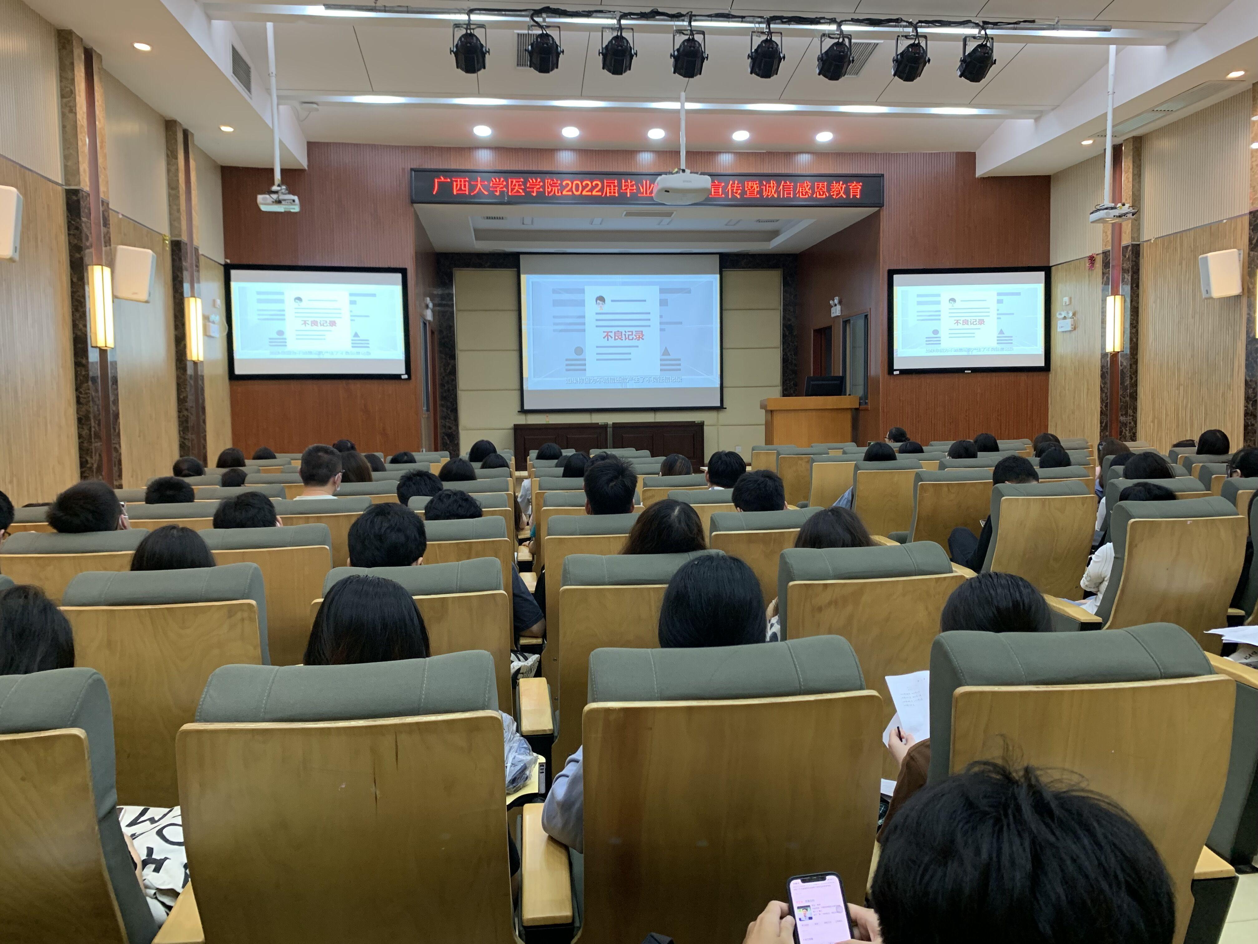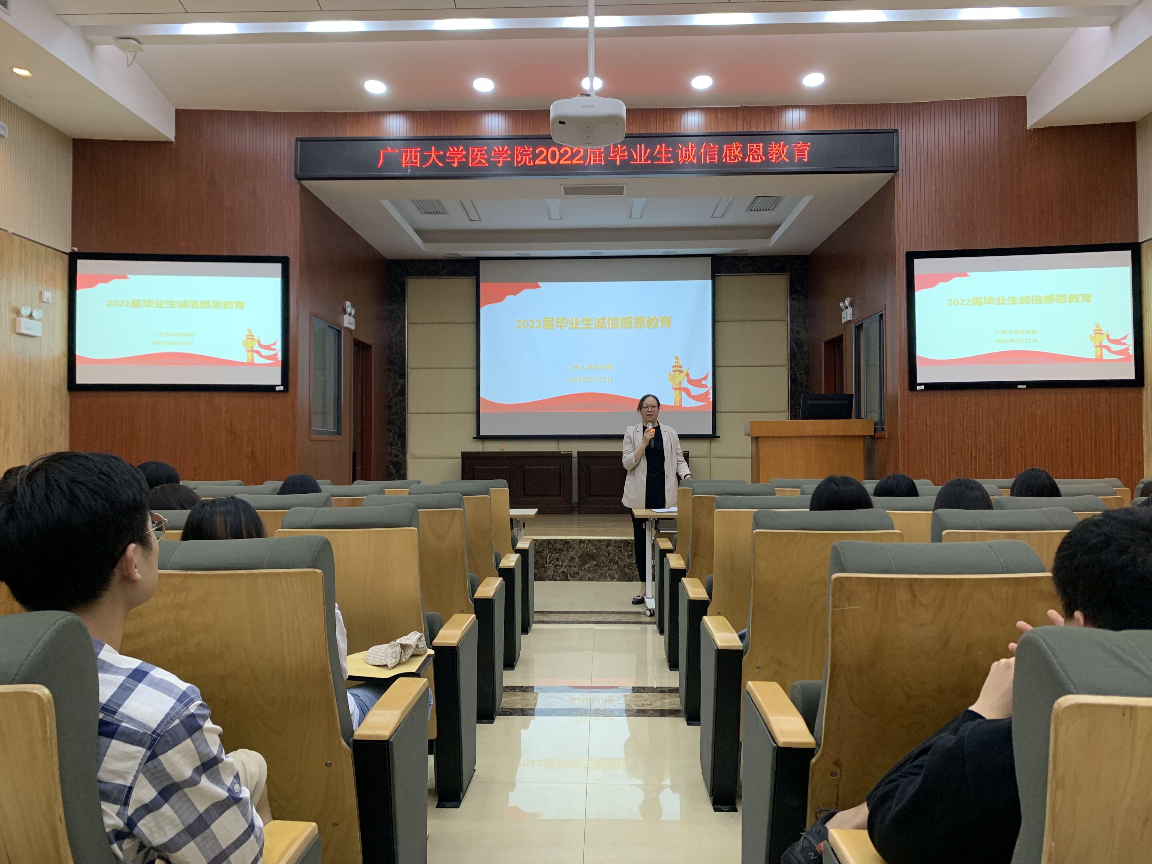 为进一步加强毕业生对国家助学贷款政策的了解,提高毕业生的诚信意识,做好毕业生贷款相关工作,5月23日下午,医书院在学术报告厅召开2022届毕业生资助政策宣传暨诚信感恩教育大会,学院党委副书记李莉、辅导员郑艳青及全体毕业生参加会议。